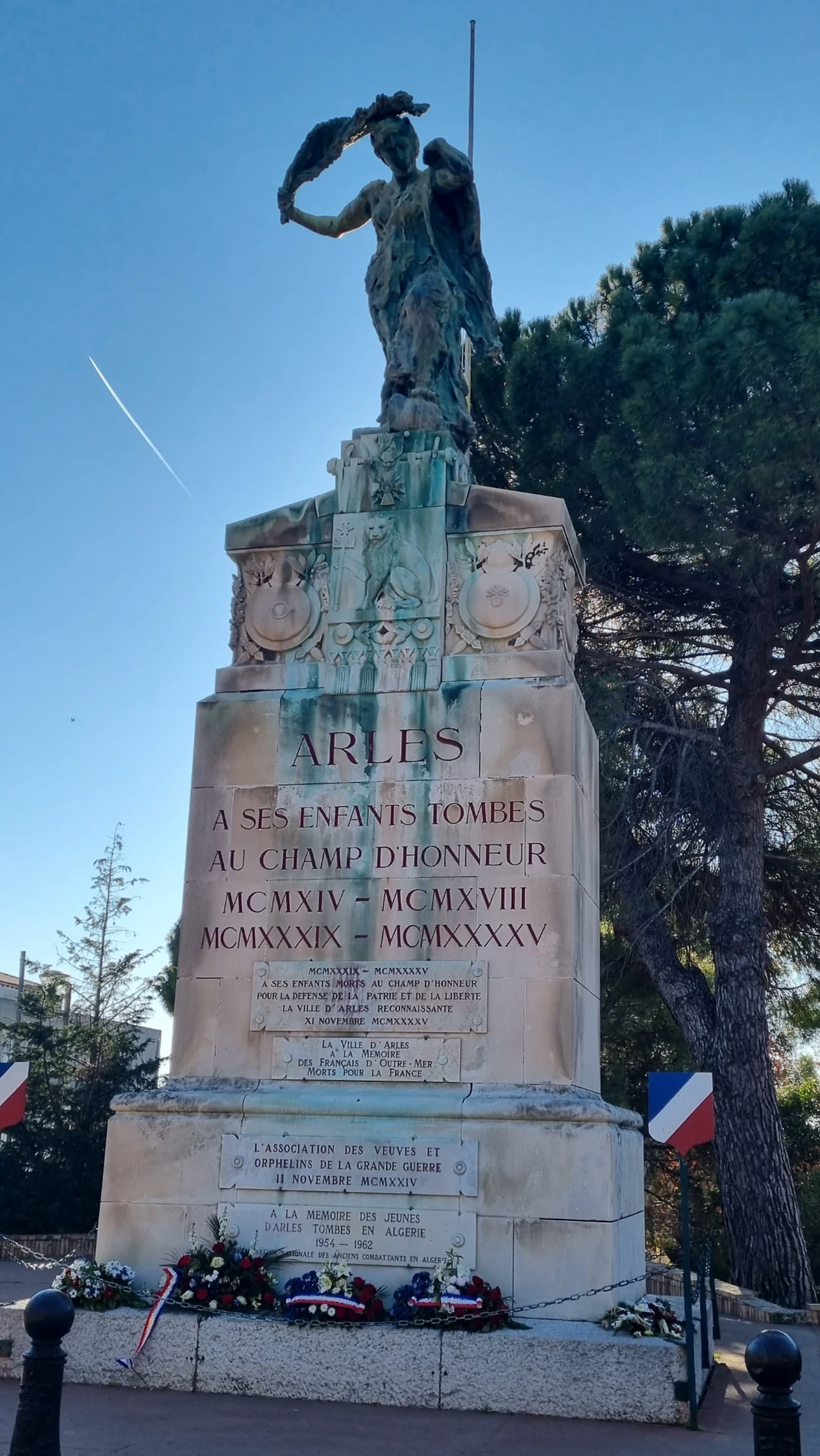 "조국과 자유를 위해 싸우다 들판에서 죽은 자식들에게 감사하는 아를의 도시"
