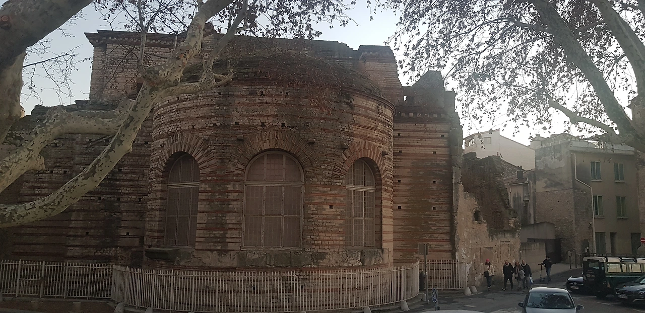 기차역으로 가면서 본 론강의 고대 로마 공중목욕탕. 4세기 초에 콘스탄티누스 황제가 세운 이 목욕탕은 로마인들에게 있어 사회생활을 할 수 있는 가장 중요한 장소 중 하나였다. 로마인들은 계층 또는 성별에 관계없이 목욕탕에서 휴식을 취하고 친구를 만났다.