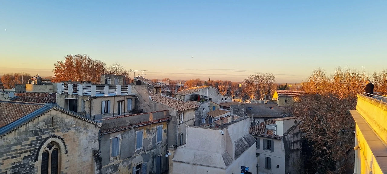마르세유에서 기차를 타고 아비뇽 숙소에 도착한 것은 밤늦은 시간이어서 주변 풍경을 볼 수 없었는데 아침에 일어나 창문을 여니 이런 풍경이 펼쳐졌다. 내 사진 속에 우연히 들어가 계신 신사분의 뒷모습, 해 뜨는 풍경을 찍고 있는 듯하다.