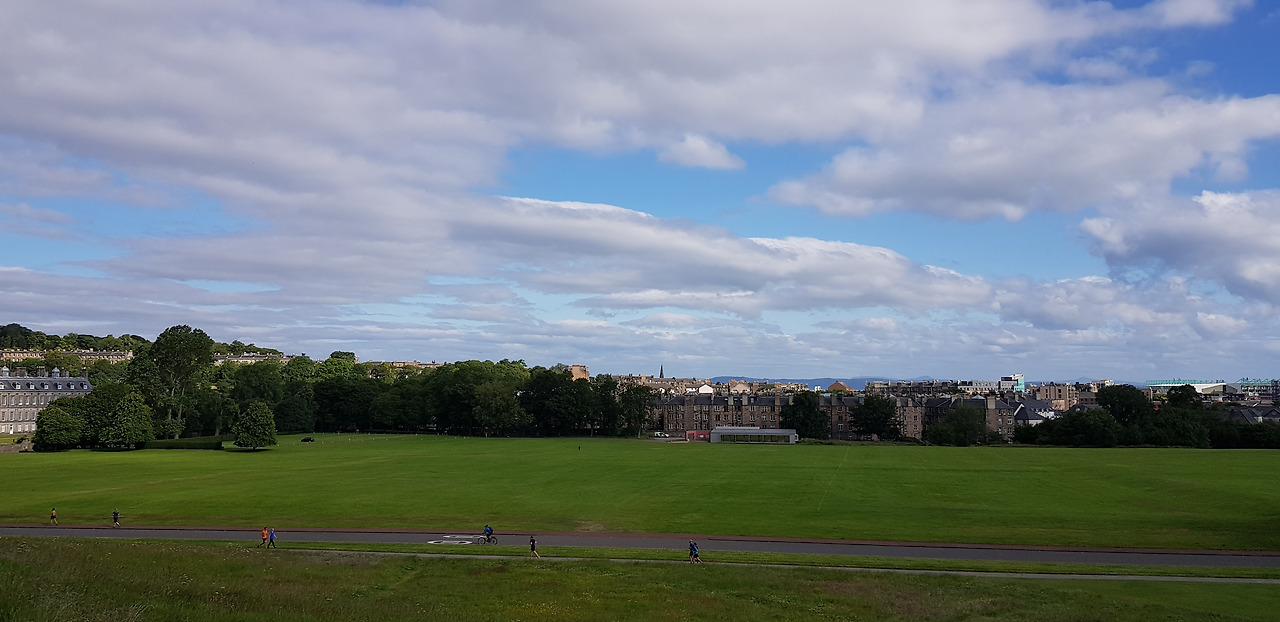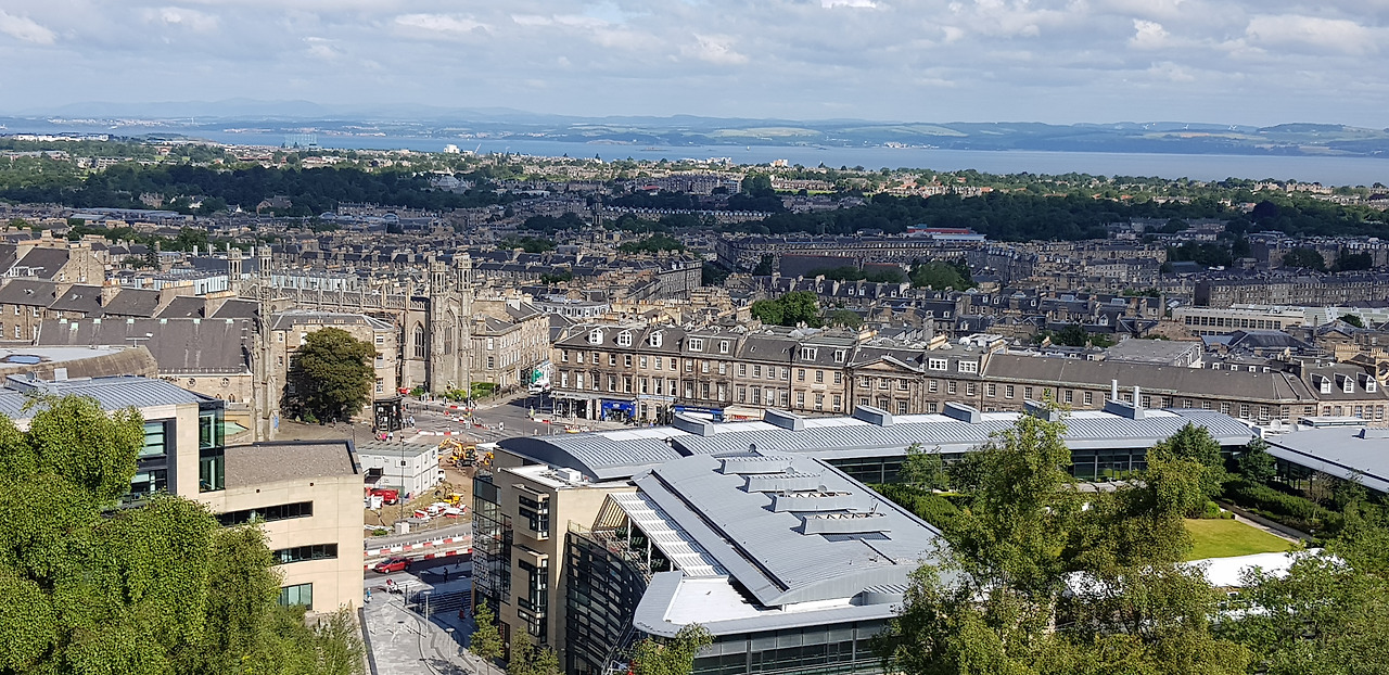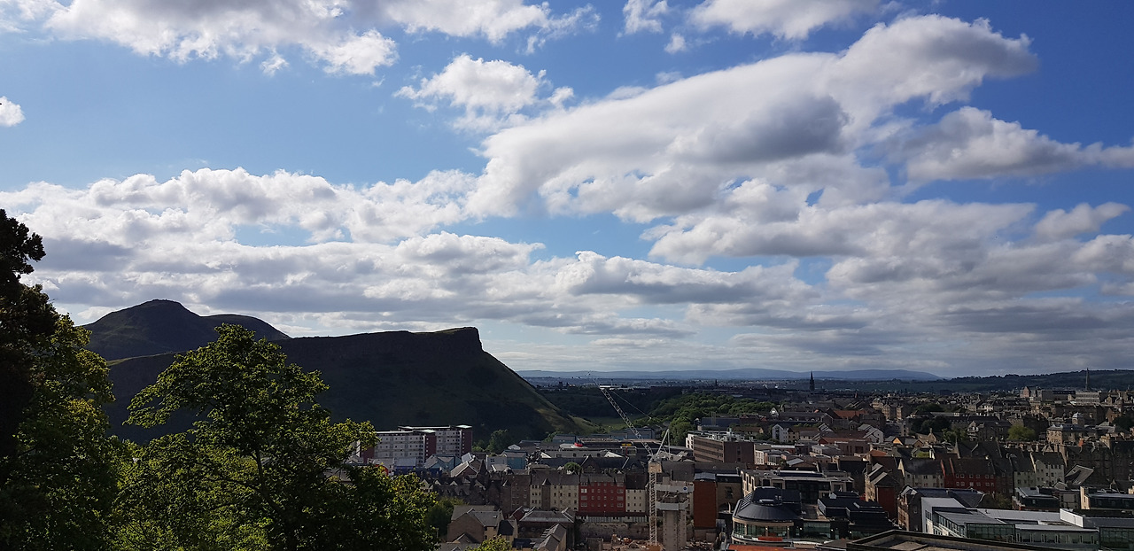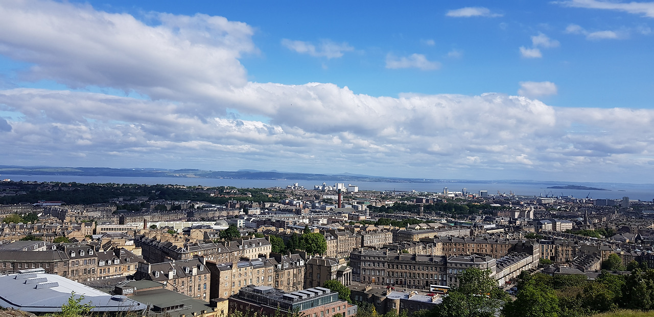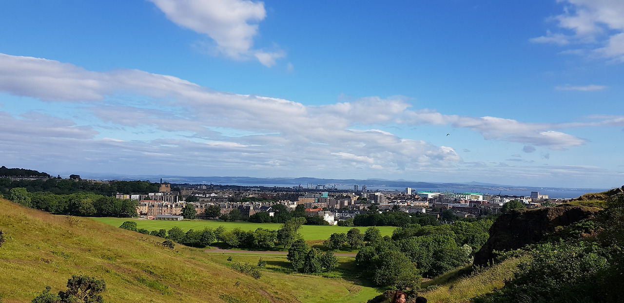 로열 마을과 에든버러 성, 홀리루드 하우스 궁전과 아서 시트, 먼바다 까지도 보인다.
