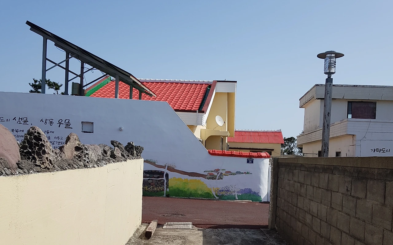 마을 안쪽길 담벼락에는 그곳의 역사에 대한 기록과 벽화가 있다.