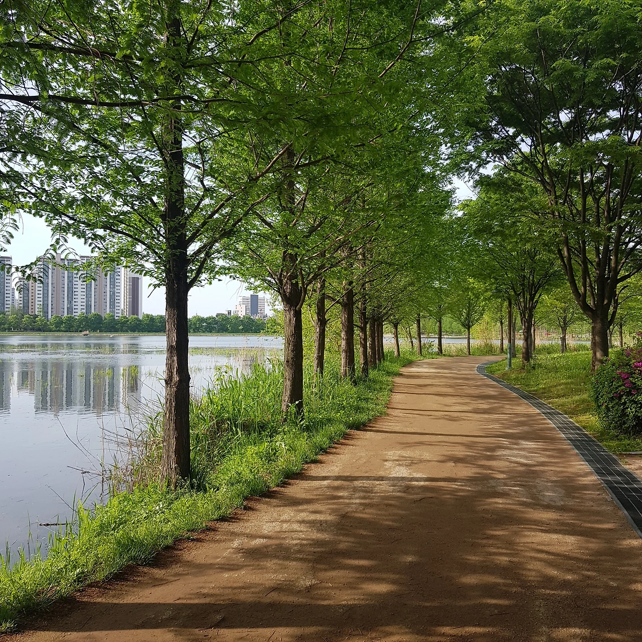나무들은 물이 올라 연초록으로 생기를 뿜어내며 걷기 좋게 그늘을 드리우고