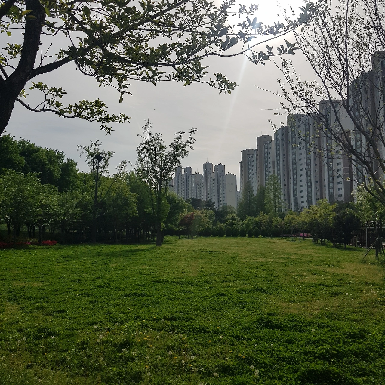공원의 풀밭에는 온갖 생명들이 자라고 있다.
