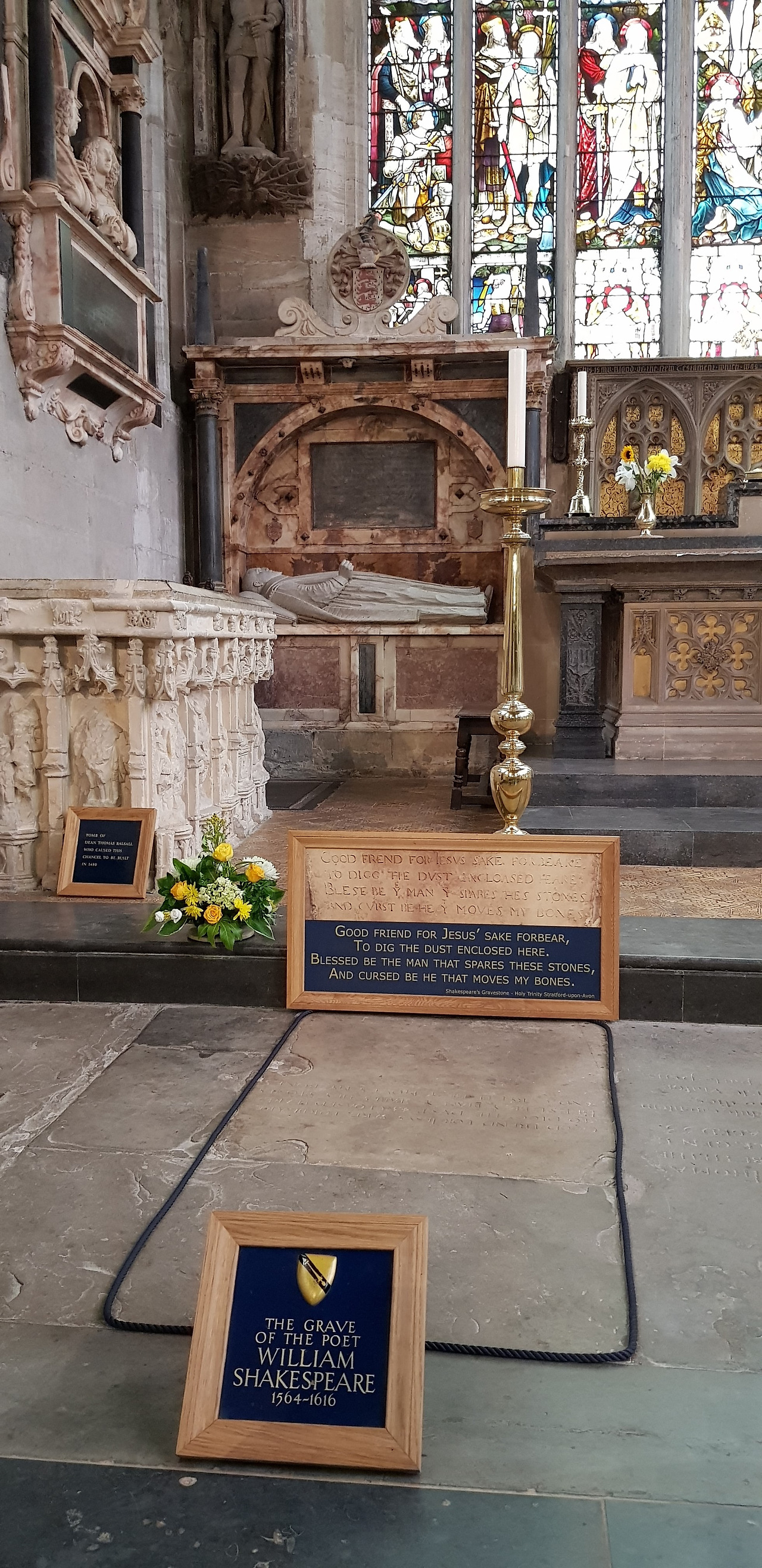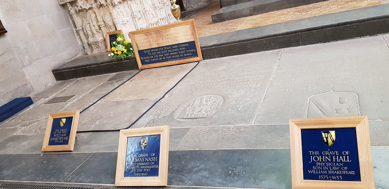 셰익스피어(1564년~1616년)가 세례를 받았고 그와 가족들의 무덤이 있는 곳이다. 셰익스피어의 묘비에 있는 문장은 조금 의외였다.