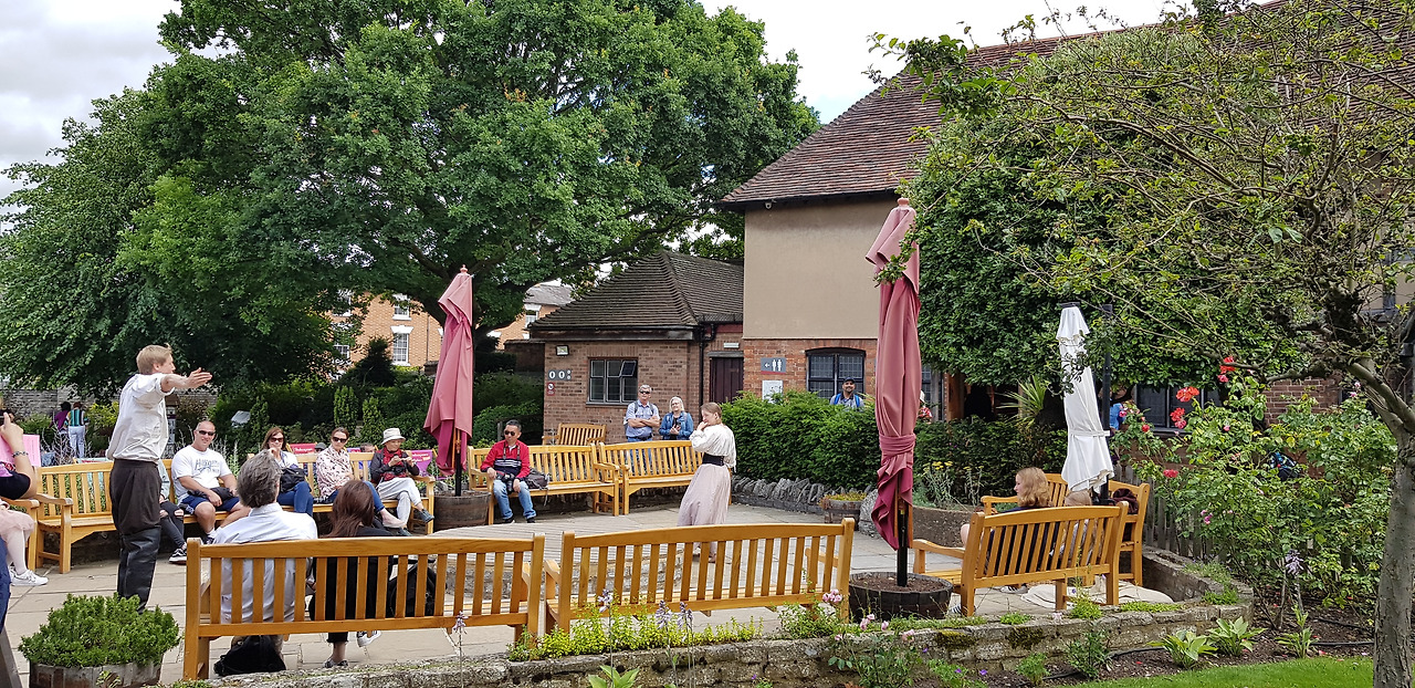 생가 뒷마당에서 셰익스피어 희곡 즉석 공연을 하고 있다.