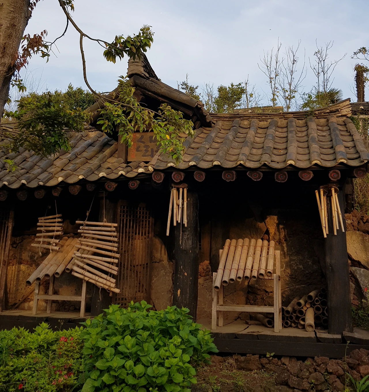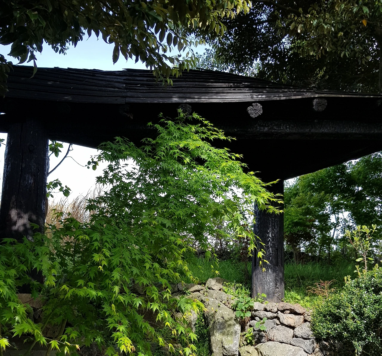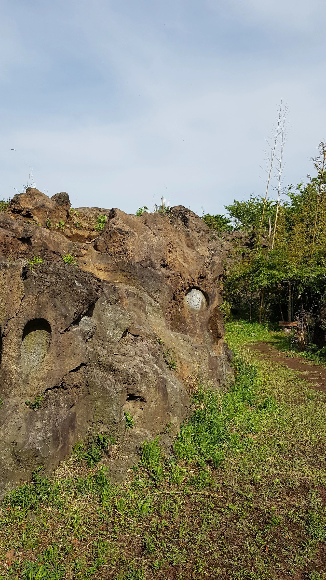 오랜 세월 동안 바위에 생긴 균열을 따라 돌을 들어내면서 길을 만들고 여기서 나온 돌로 담을 쌓았다. 안쪽에는 빗물을 모아 만든 연못인 억년 지를 끌어올려 폭포를 만들다. 이름은 '나이야 가라 폭포'