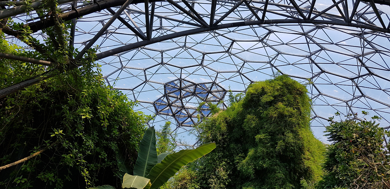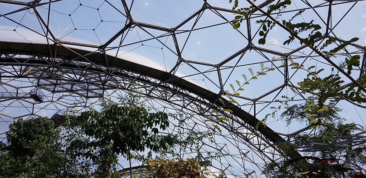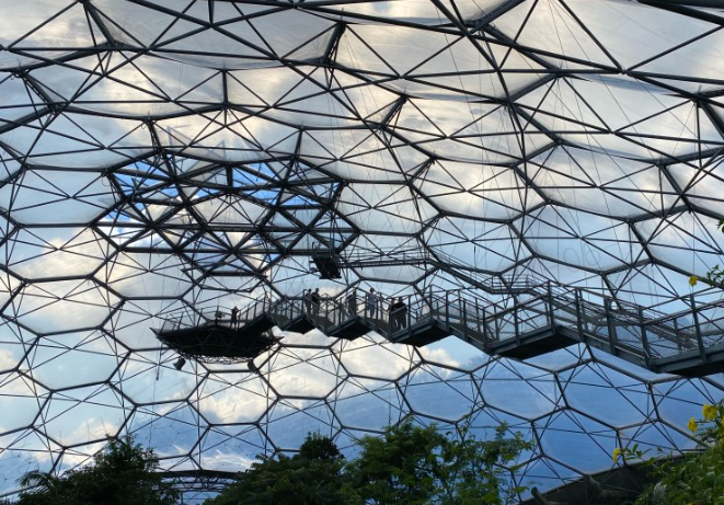 이는 벌집 모양에서 착안한 것으로 아연 철관의 프레임과 그 위에 재활용이 가능한 세 겹의 ETFE 필름을 덮어 온실을 완성했다.