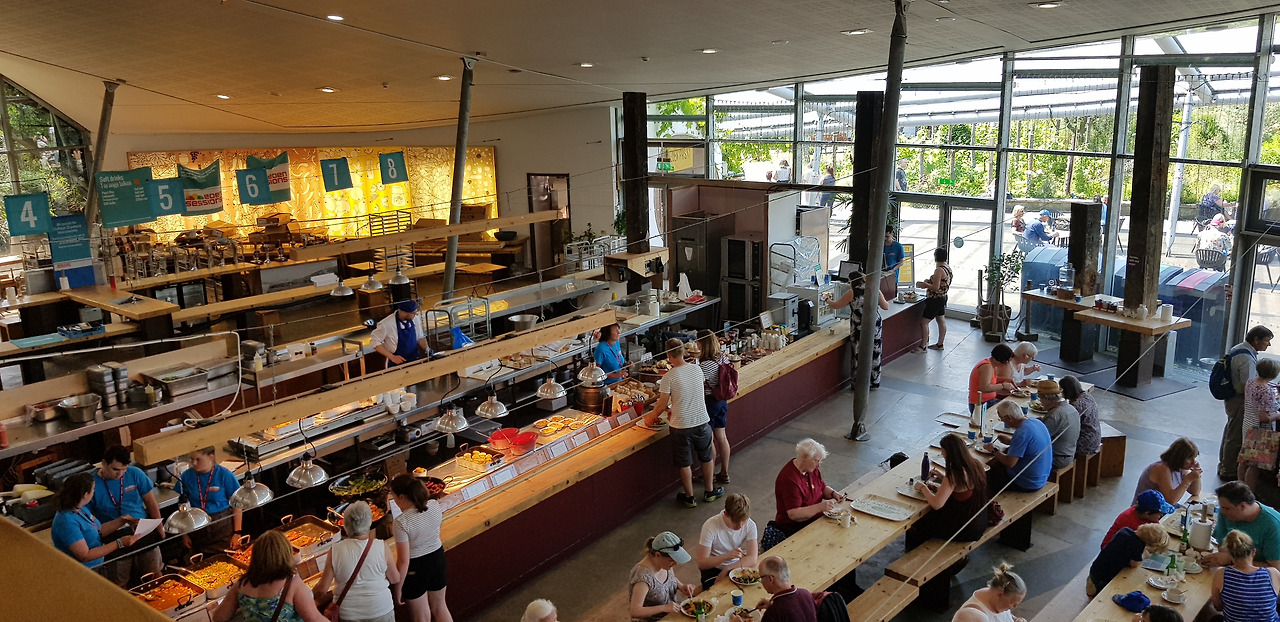열대 우림관과 온대식물 생태관 사이에 커다란 식당이 있다. 원하는 음식을 접시에 담은 후 계산하는 방식이다. 구운 고기, 샐러드, 파이, 맥주 등을 먹을 수 있다.