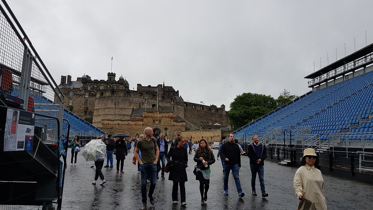 에든버러 성 입구 양쪽에 계단식으로 배치된 수많은 의자들은 축제의 관중석이다.