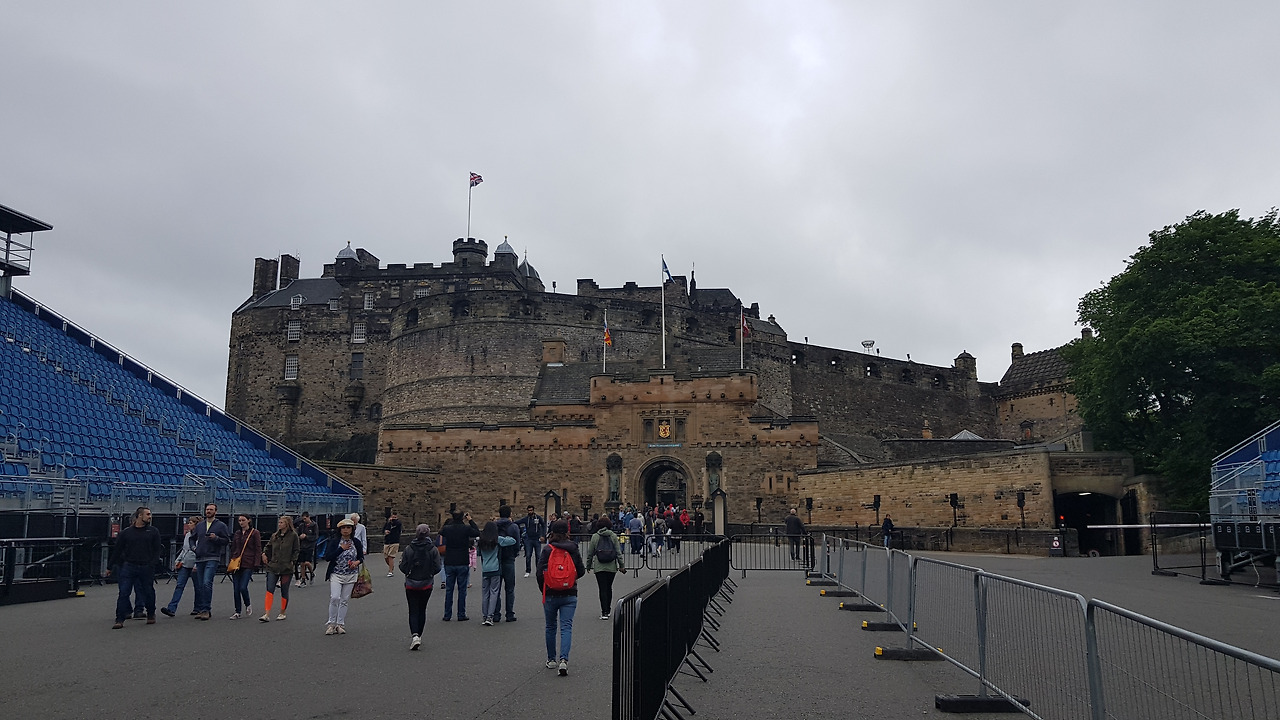 에든버러 성 입구에 대형 무대가 설치되고 있다.