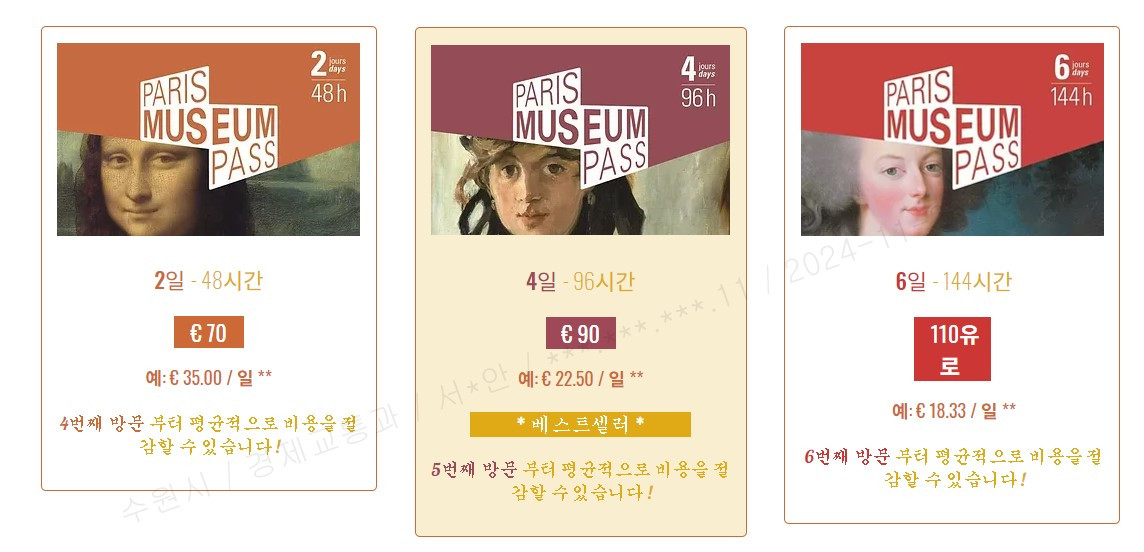 출처(파리 뮤지엄 패스 홈페이지, 2024.11.26 현재)