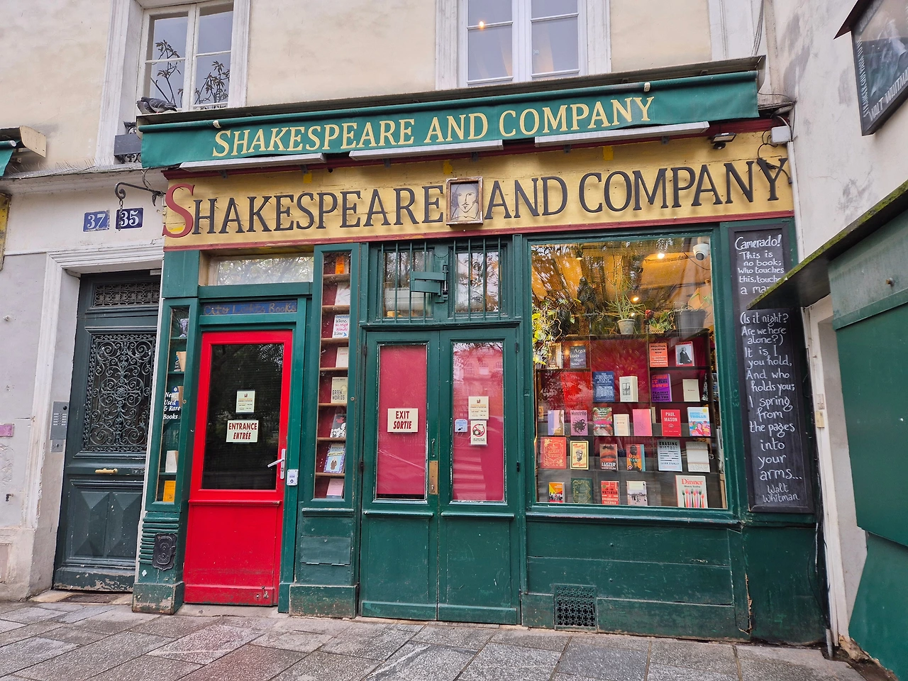 내부에서 사진을 찍을 수 없다는 안내 문구가 입구 오른쪽에 쓰여있다. 안으로 들어가면 목조로 된 바닥과 계단이 중저음의 비명으로 우리를 반긴다. 책은 모두 영어와 프랑스어라서 쉽사리 읽을 수는 없지만 그곳이 주는 특유의 편안함과 고풍스러움 그리고 따스함이 있다. 넓지는 않지만 숨어서 책을 읽을 수 있는 작은 공간들이 있고 2층으로 올라가면 센강과 노트르담 성당이 창밖으로 보이면서 책으로 둘러싸인 공간 특유의 아늑함이 있다. 영어로 된 책을 읽을 능력은 없는 우리는 파우치 한 개씩을 사가지고 나왔다.