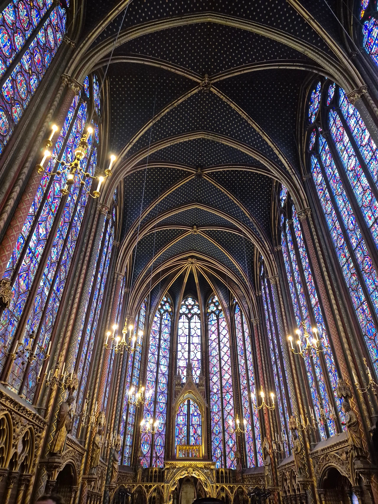 파리 법원 안에 있는 생트 샤펠 성당은 스테인드 글라스가 유명한 곳이다. 맑은 날이라면 스테인드 글라스가 빛을 받아 아름답게 빛나는 모습을 볼 수 있다. 2개 층으로 이루어져 있으며 2층에는 요한 계시록의 내용을 새긴 86개 창문 스테인드글라스와 12 사도의 동상을 정교하게 조각한 12기둥이 있다. 작은 공간이지만 꽉 찬 느낌을 준다.