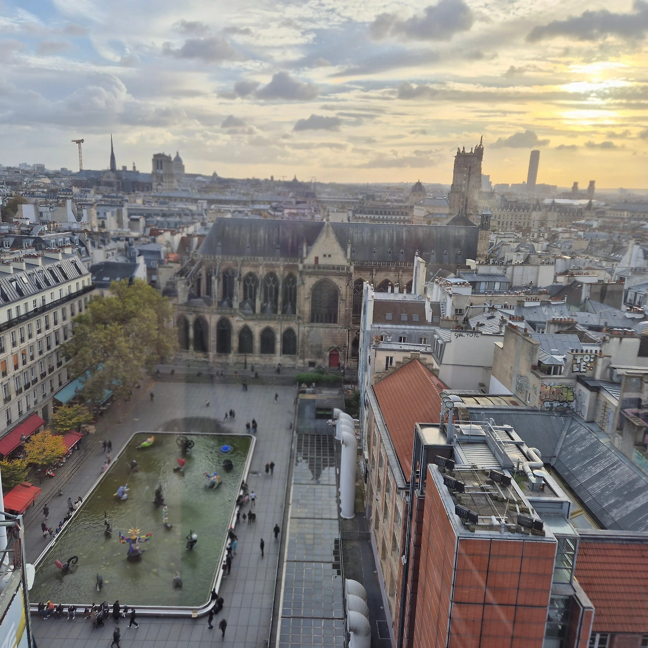 지난번 파리에 왔을 때 퐁피두 센터 내부를 교과서 훑듯이 보았기 때문에 이번에는 그때 시간이 부족해 못 간 옥상 전망을 보기 위해 들어갔다. 퐁피두 센터는 예약 없이 들어갈 수 있고 뮤지엄 패스가 가능한 곳이다. 우리가 방문한 날은 월요일이었는데 뮤지엄 패스가 없는 사람들의 줄이 엄청나게 길었고 뮤지엄 패스 줄은 바로 입장할 수 있었다.