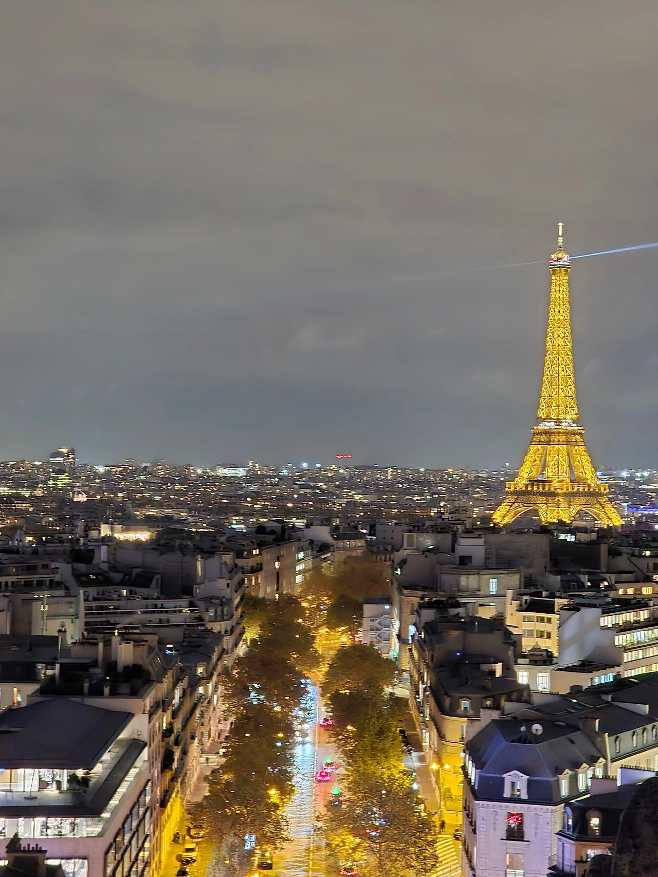 전망대에 올라가면 개선문을 중심으로 방사형으로 뻗어나간 샹젤리제 거리 등 12개의 대로를 360도 파노라마로 볼 수 있다. 파리의 모습을 제대로 볼 수 있는 곳이다. 특히 야경이 아름다운데 에펠탑 야경을 볼 수 있는 방향에 사람들이 가장 오래 머문다.
