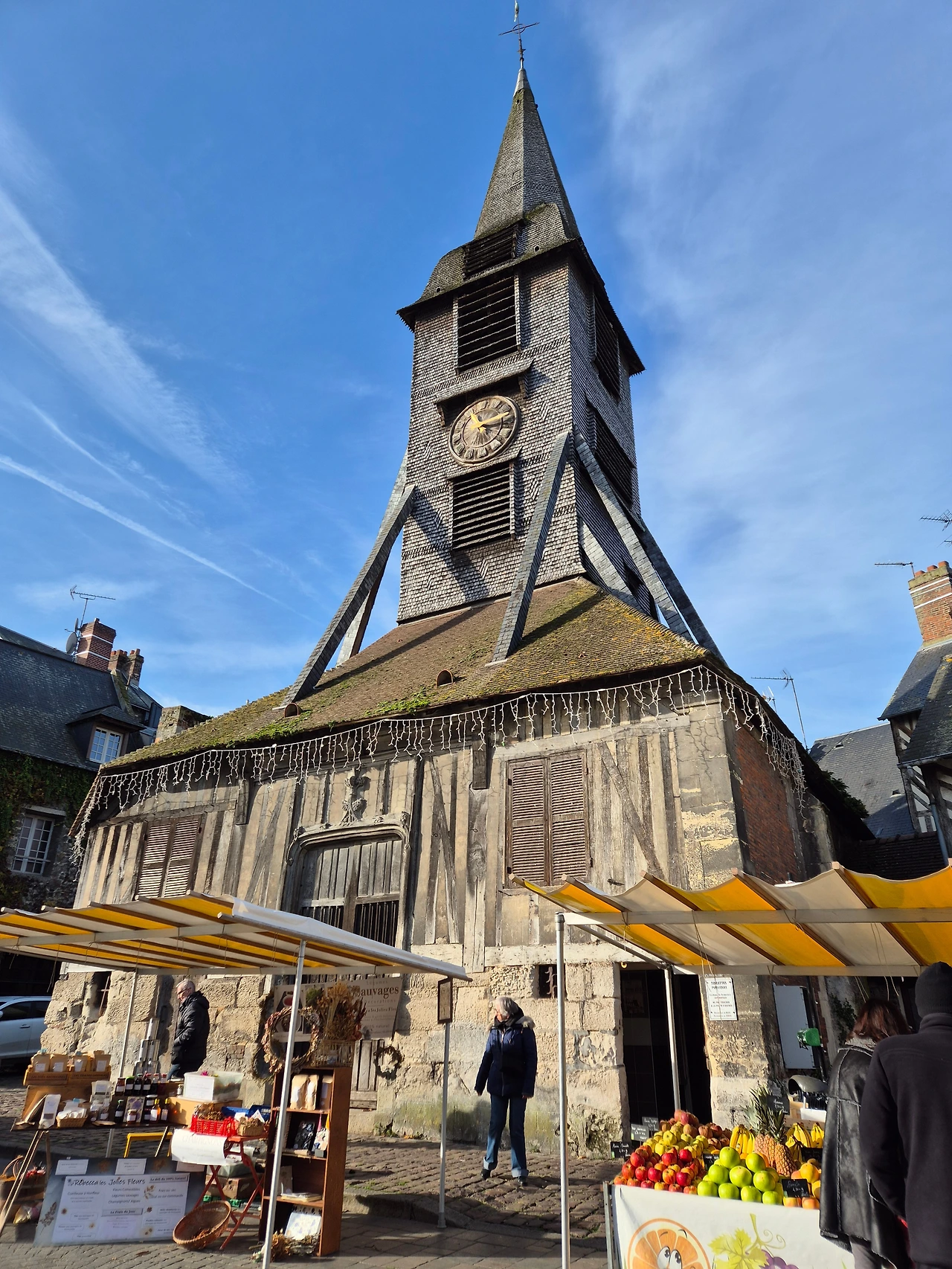 매주 토요일 마을시장이 열린다고 하는데 우리가 간 날은 수요일이었는데도 과일, 채소 등 직접 재배한 농산물과 직접 만든 수제청, 과자, 치즈, 케이크 등을 파는 장이 열리고 있었다. 우리는 몇 가지 과일을 사서 몽생미셸 가는 버스 안에서 먹었다.