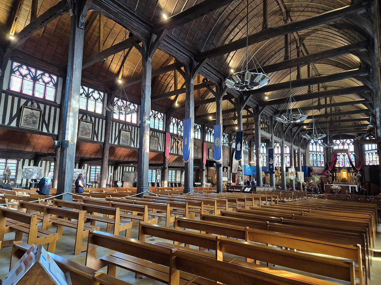 성당 정면은 동일한 두 개의 건축물이 대칭을 이루며 붙어있고 성당 내부 또한 두 개의 성당이 대칭을 이루며 붙어있는 형태이다. 왼쪽이 원래 성당이고 오른쪽은 16세기 증축 부분이다. 들어가는 입구에 있는 그물과 물고기는 어촌 마을인 옹플뢰르를 상징하며 예수를 상징하기도 한다.