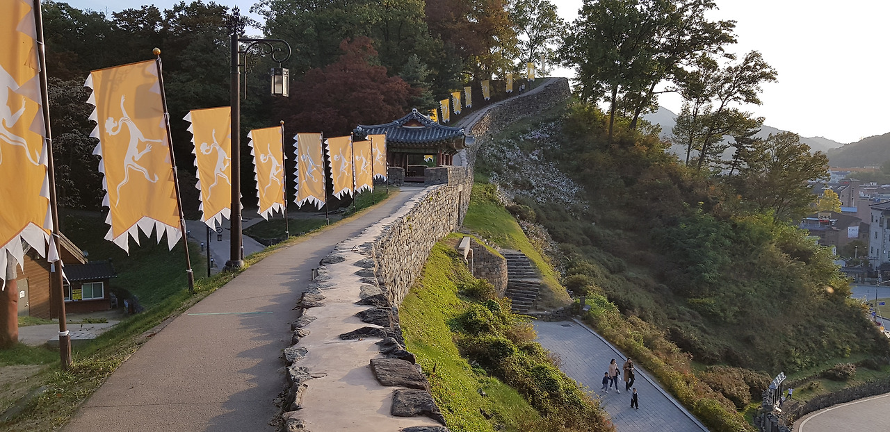 천오백 년 전부터 이 자리에 있던 성곽에 석양빛이 비친다.