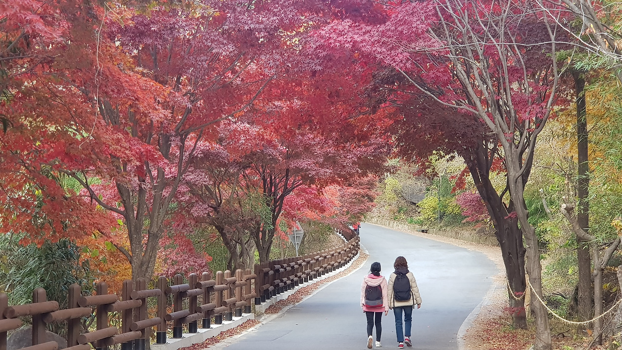 한껏 물이 든 나뭇잎들이 환하다.