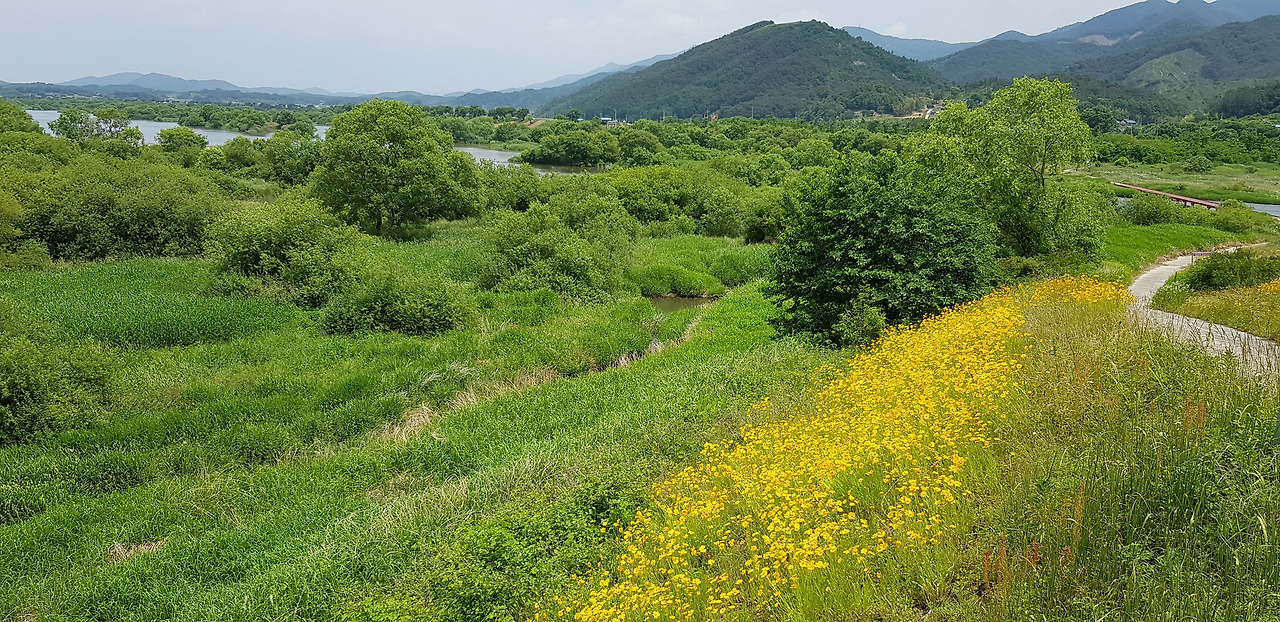 초록속에 포진해 있는 노란색이 풍경에 생기를 더한다.