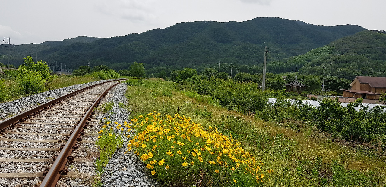 기찻길 옆 곳곳에 금계국이 한창이다.
