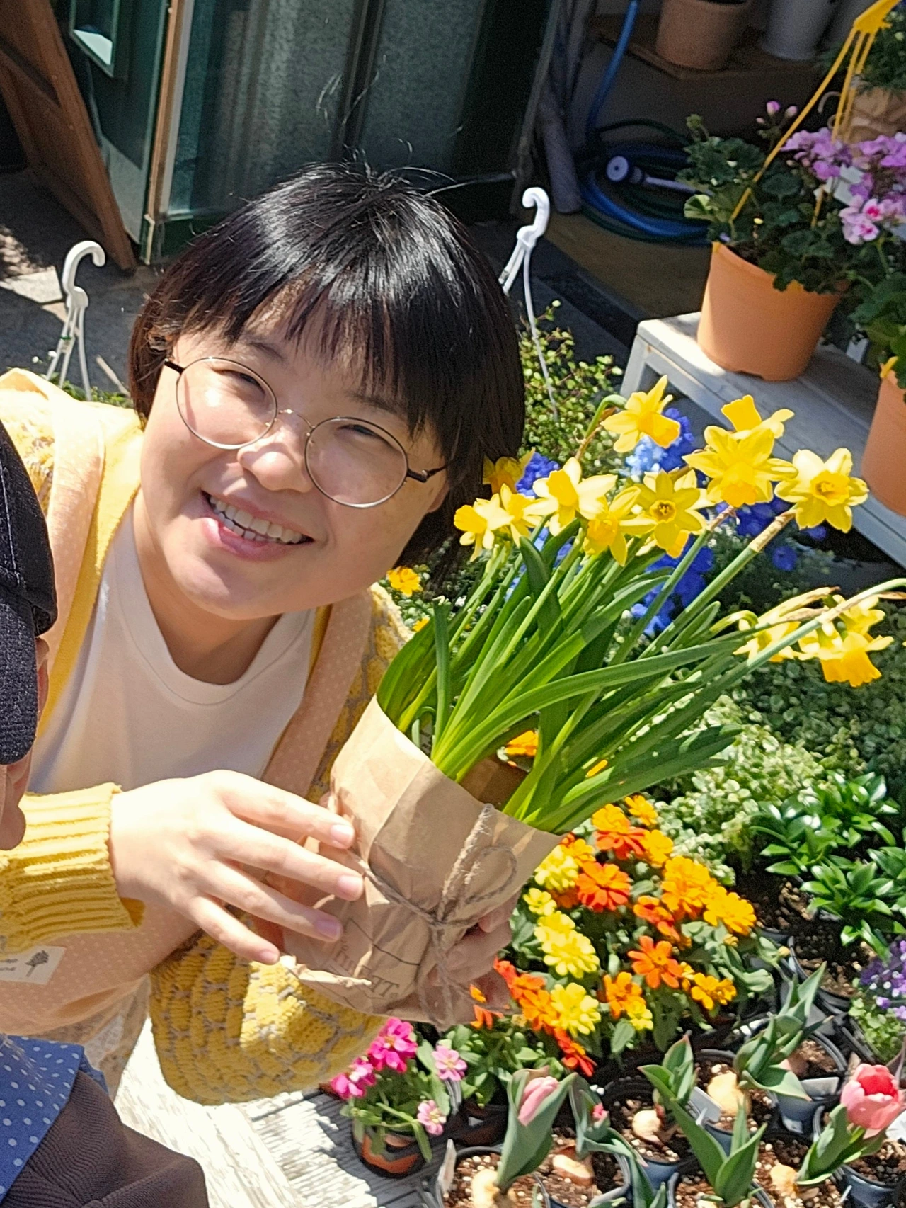 나는 얼른 수선화를 할머니 손에 들려주었다. 마다하셨지만 실랑이 끝에 할머니 손에 들려 보냈다.