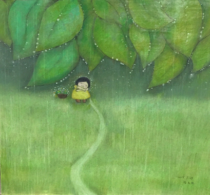 놀란 이유는 두 가지였다. 하나는 순간적으로나마 그럴듯해 보이는 답을 했다는 것이다. 아이는 커다란 나뭇잎들 아래에서 비를 피하고 있는데 말은 혼자서 내리는 비를 고스란히 맞고 서 있었다. 처음 이 그림이 마음에 들었던 이유처럼 귀여운 아이에게만 시선을 뺏긴 줄 알았다. 하지만 ‘말에게도 눈길을 보내고 있었구나. 다 보고 있었구나’ 하면서 왠지 모르게 안심이 되었다.