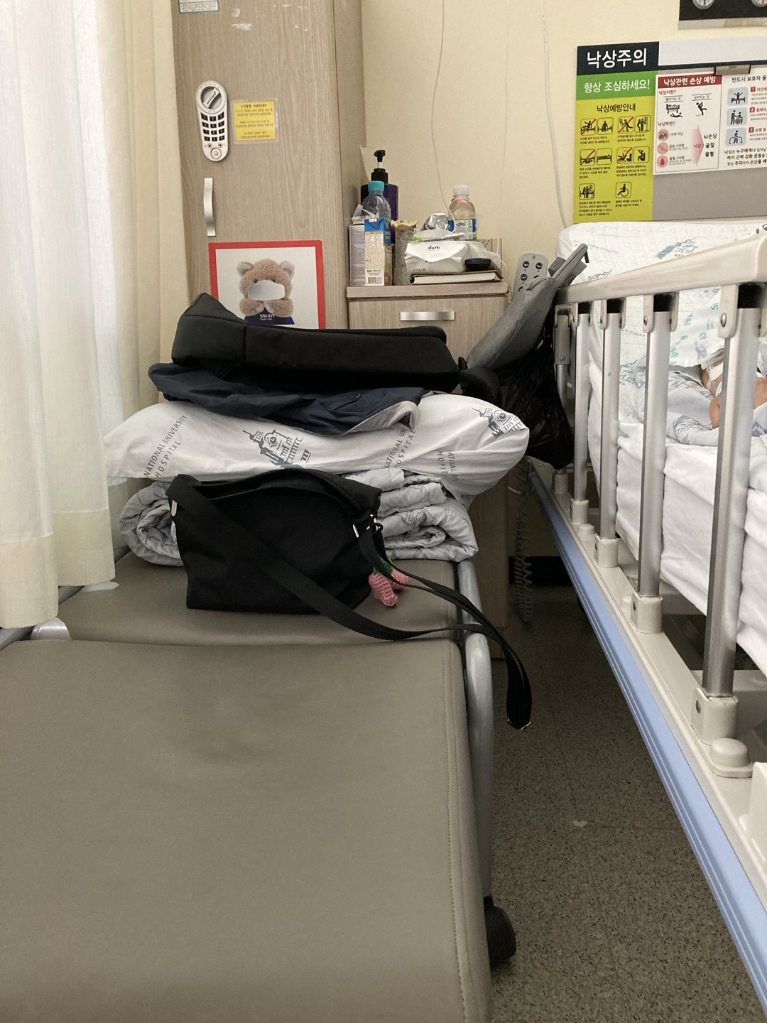같은 기간 동안 오빠도 서울대 병원에 입원하여 큰 수술을 받았고, 환자복을 입고 하루 3-4번씩 엄마 병동에 병문안을 왔다. 오빠는 간호간병통합병동에 입원해서 다른 간병인을 구하지 않아도 되는 일이 다행이라면 다행이었다. 그럼에도 나는 엄마가 입원한 12층과 오빠가 입원한 5층을 오가야 했다. 집에는 만성 당뇨를 앓고 계신 아버지가 혼자 계셨기에 병원을 벗어나서는 집으로 가서 식사와 간단한 집안일을 챙겨 놓고 오는 날들이었다.