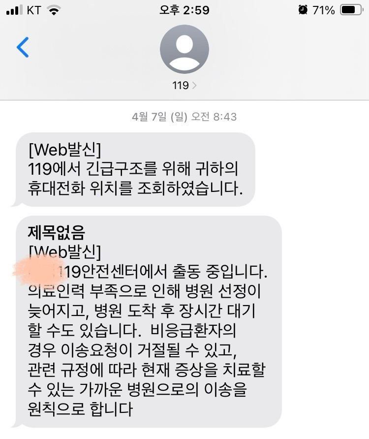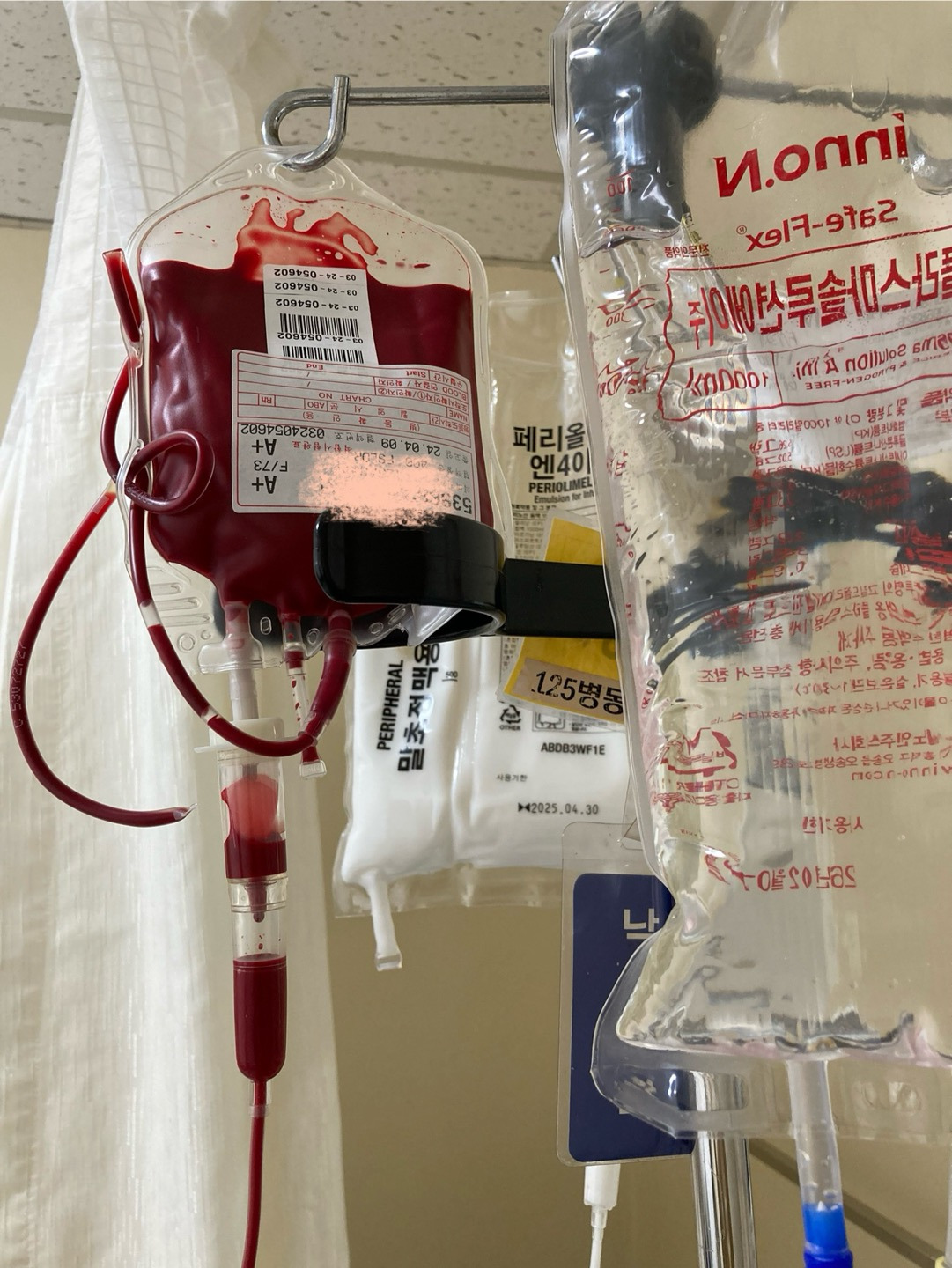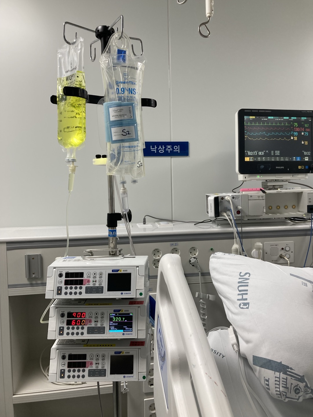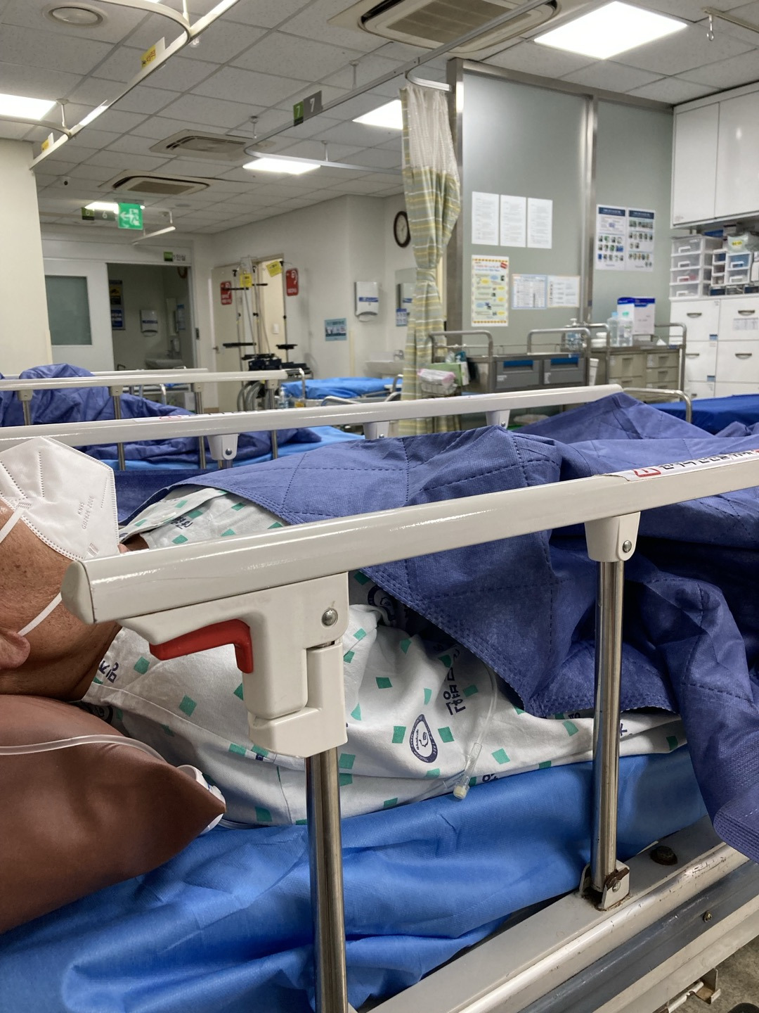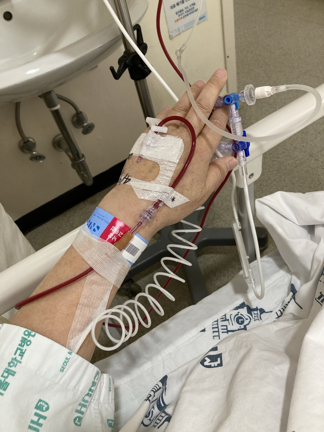 전 날부터 복통과 온몸에 극심한 통증으로 잠을 못 주무셨다. 머리가 아프다고 하셔서 열을 재니 38도가 넘었다. 열이 나면 병원으로 연락하라는 지시에 따라 119에 전화를 걸었다. 열이 38.6도. 서울대 병원은 담당 구역이 아니라 이송을 하기 어렵다고 했다. 서울대병원까지 가려면 자차로 이동을 해야 하는데, 집에 차가 없었다. 열이라도 내리고 비상조치라도 하고 이동하는 것이 낫겠다는 판단에 119 구급차 타고 가까운 병원 응급실로 이동했다. 3시간 여 해열제와 진통제를 맞고 이모네 식구의 도움을 받아 서울대병원으로 향했다. 열을 내려 36.7도 상태에서 이동했는데, 서울대병원에 가니 다시 38도로 올랐다. 의료진의 파업으로 인력이 부족한 응급실에서는 병상도 허락되지 않았다. 휠체어에 앉아 해열제, 진통제, 항생제, 백혈구 촉진제를 번갈아 맞아가며 심야 12시가 되어 겨우 응급실 병상에 누울 수 있었다. 엄마의 호중구(절대 백혈구) 수치가 2까지 내려가 있었다(일반적인 경우 4,000 이상의 수치). 자신의 몸을 방어할 우군이 단 2명밖에 없는 상태였다. 병원에서는 타 병원 전원 조치를 원했지만, 서울 시내 병원 중에 엄마 같은 환자를 전원 받겠다고 하는 병원이 없었다. 하루를 꼬박 응급실에서 보내시고 8일 오후 3시, 겨우 서울대병원 입원전담병동의 병상을 얻을 수 있었다.