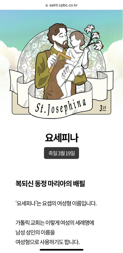 엄마는 그날 예쁜 이름을 하나 더 얻으셨다. 요세피나. 성모 마리아의 남편인 요셉 성인의 여성형 이름이다. 세례명을 정하면서 알게 되었는데, 요셉 성인은 노동자들의 수호자이자, 사회정의의 수호자이고 특별히 임종하는 이들의 수호성인이라고 한다. 성모 마리아와 예수님 품에서 임종한 유일한 사람이라서 그런 특별한 의미가 담겨 있다고 했다. 그러고 보니, 엄마는 누구보다 자신에게 주어진 하루하루를 열심히 사셨다. 내가 엄마에게 다른 사람들이 어떻게 기억해 주기를 바라는지 물었을 때, 당신을 열심히 살아온 사람으로 기억해 주길 바란다는 말씀을 하셨었다. 맞벌이하면서 평생을 쉴 틈 없이 일하셨고, 노동의 가치를 누구보다 소중히 생각하신 분이었다. 더구나 요셉 성인의 축일은 3월 19일인데 사순절이 포함된 이 시기가 특별한 의미를 지니는 것 같다.