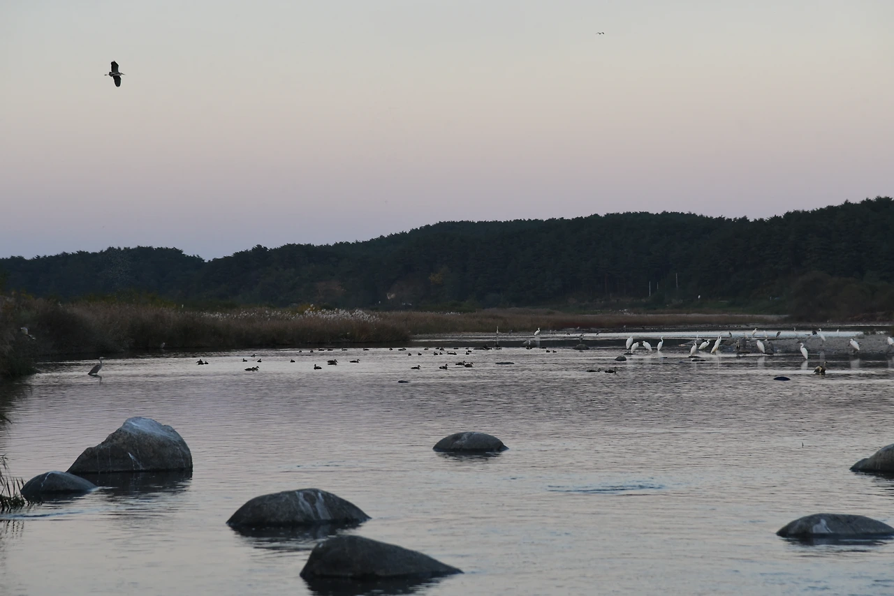 가끔 예기치 않게 닭을 잡으려다가 꿩을 잡는 경우가 있다. 지난 2015년 10월 24일 양양의 남대천으로 연어를 보러 간 날이 그런 경우이다. 이날 우리 4명은 이른 오후부터 남대천에 들어가 연어를 찾기 시작했다. 연어가 강으로 한참 올라오는 시기 이었으므로 연어를 쉽게 발견할 수 있었다. 그러나 번식을 마치고 죽은 연어가 대부분 이었다. 번식을 하려고 하는 싱싱한 연어는 너무 빨리 움직여 사진에 담을 수가 없었다. 그렇지만 어뢰처럼 물속을 가르는 연어를 처음 보면서 우리는 이미 멋진 여행에 만족해했다.