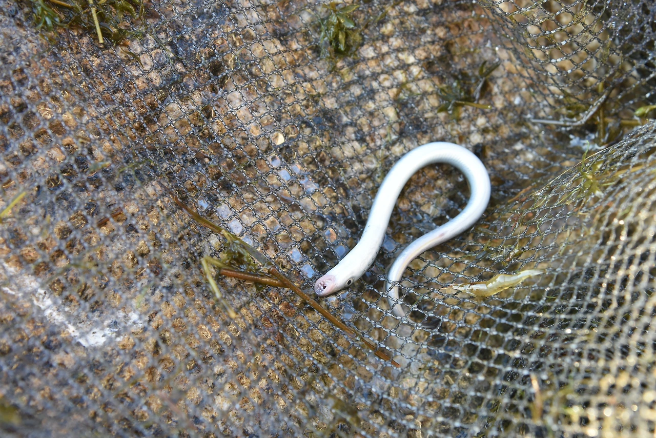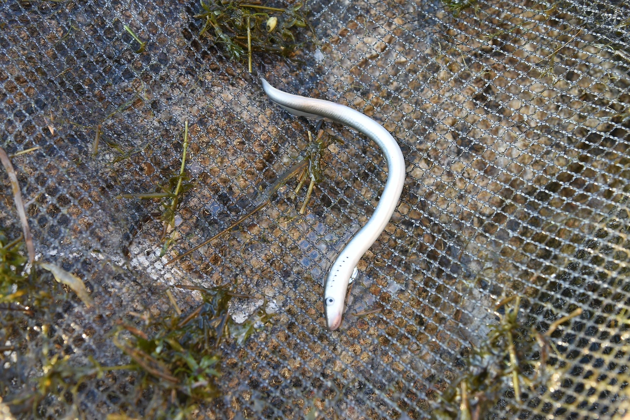 우리가 연어를 보러 갈 수 있었던 계기는 성무성 군이다. 이 친구는 현재 대학생인데 초등학교 때부터 민물고기가 좋아서 전국을 누비고 있다. 우리가 연어에 정신이 팔려 사진을 찍고 있는 동안에도 이 친구는 족대로 강을 여기저기 쑤셔댔다. 족대는 대나무 두 개 사이에 그물이 쳐 있어서 얕은 물에 있는 물고기를 잡기에 적당하다. 관심이 있은 민물고기라도 올라오면 채집통에 집어넣고 우리에게 열심히 설명을 해주었다. 늦은 10월이라 날도 슬슬 저물기 시작했고, 연어도 충분히 구경했다. 그런데 이 친구는 물고기 잡기를 멈추지 않았다. 우리는 저녁 먹을 생각을 하고 있는데 갑자기 이 친구가 '칠성장어다!'라고 소리를 지르기 시작했다. 어류를 잘 모르는 나지만 칠성장어는 대학교 일반생물학 교과서에서도 등장해서 귀에 익숙했다. 평생 민물고기를 쫓아 돌아다니는 분들도 쉽게 구경하지 못하는 물고기라며 성무성 군은 흥분을 가라앉히지 못했다.