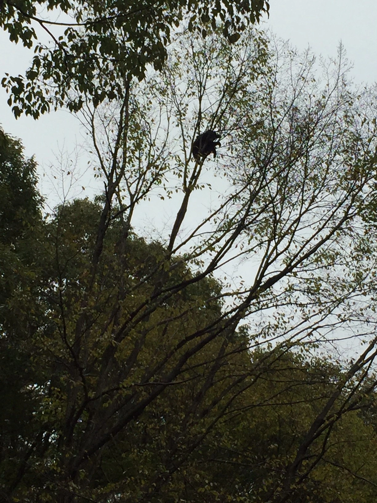 방사를 위해 우리가 적응훈련장에 접근했을 때 새끼 곰 두마리는 바로 나무 위로 올라갔다. 새끼들은 사람을 피하도록 훈련을 받았다. 덕분에 방사하는 동안 이들은 나무에서 내려오지 않았다.