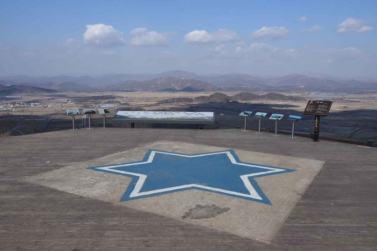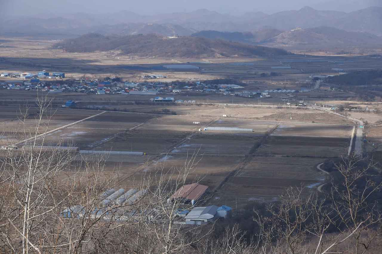 이 분은 우리를 제일 먼저 철원의 사요리에 있는 소이산 정상으로 인도했다. 이 산은 겨우 해발 362m이지만, 정상에 올라서자 산들이 요새처럼 사방을 둘러싼 철원평야가 한 눈에 들어왔다. 궁예가 하필 여기를 태봉국의 수도로 정했는지 이해가 갔다. 소이산 정상에서 민통선, DMZ, DMZ를 따라 초소와 오피도 선명하게 보인다. 북쪽으로 요새와 같은 높은 산들은 북한 땅이다. 백마고지, 김일성고지, 노동당사와 같이 한국전쟁의 흔적도 눈 앞에 있다.