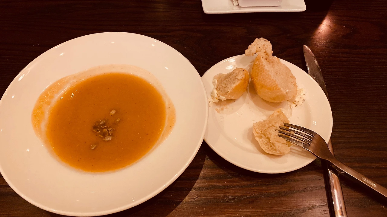 보통 코스 요리를 주문하면 각각 메뉴의 양이 그리 많지 않았는데, 역시 이 곳은 미국인가 보다. 식전 빵도 한 가득, 수프도 한 가득이었다. 곧이어 나온 메인 메뉴인 스테이크는 한국에서 팔았더라면 2인분, 혹은 패밀리 세트로도 판매가 가능했을 것이다. 디저트로 나온 초콜릿이 듬뿍 들어간 빵도 두 조각이나 주는 바람에 반을 남겨버렸다.. 배가 조금만 덜 불렀다면 얼마든지 더 먹을 수 있는 맛있는 디저트였는데 말이다.
