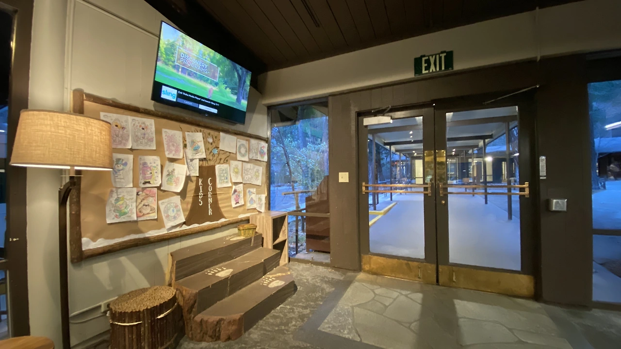 고민을 하면서 걷다 보니 어느새 메인 로비와 그 근처 식당들이 위치한 건물에 다다랐다. 푸드코트 같은 식당이 있었다. 간단하게 햄버거나 파스타, 피자 종류를 팔고 있었다. 요세미티에 오기 전에 월마트에서 맥도널드 햄버거를 먹었던 탓에 별로 내키지 않았다. 옆에 위치한 다른 식당으로 가 보았다. 조금은 사람들이 북적이고 자유롭게 소통하는 듯한 식당이었다. 들어가려고 하는데 드레스코드가 있다는 것이었다. 셔츠를 입어야 한다는 조건이 있어 바로 포기했다. 그렇게 남은 나머지 한 식당 앞에 도착했다.