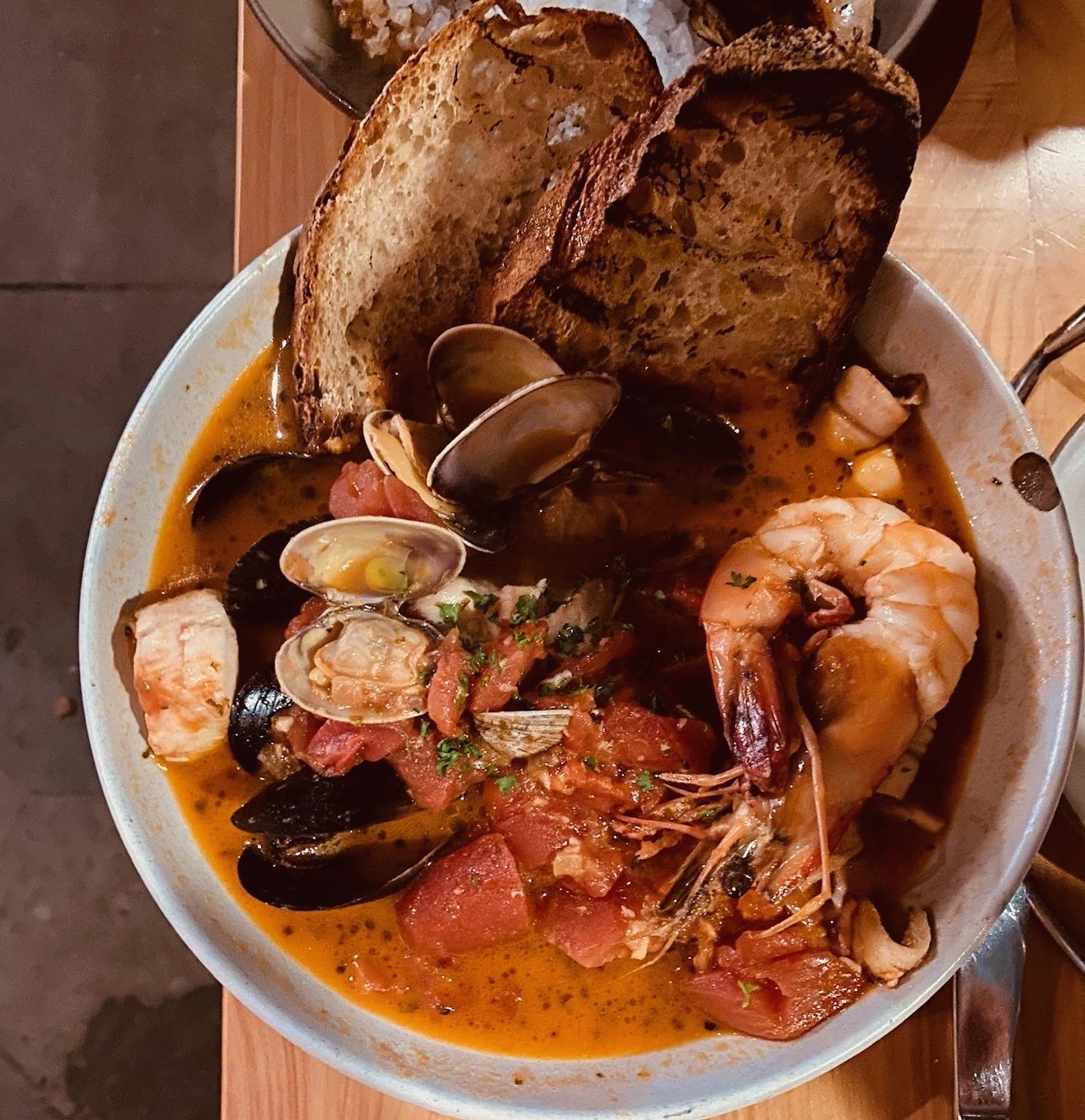 마지막 음식은 해산물이 듬뿍 들어간 스튜다. 토마토를 바탕으로 하는 매콤한 국물이 정말 일품이었다. 해산물 해장국 같은 느낌이었다. 새우, 조개, 홍합, 오징어 등의 다양한 해산물이 한가득 들어있었다. 조금 과장을 보태면 먹어도 먹어도 해산물들이 계속 생겨나는 듯했다.