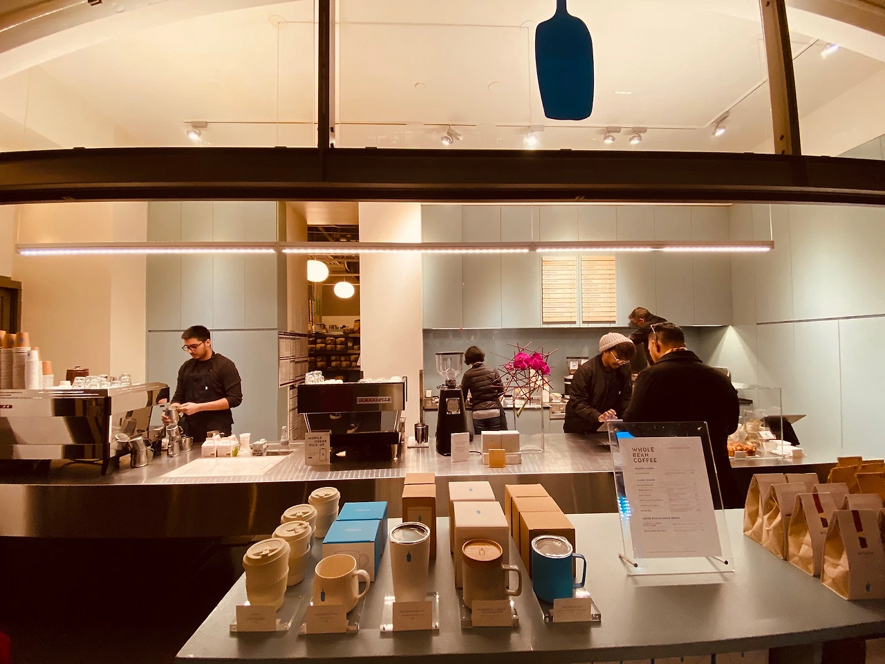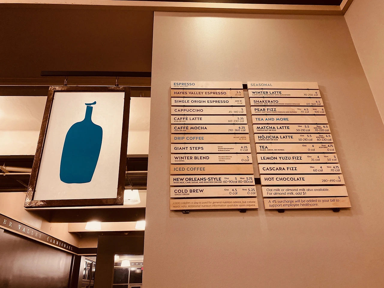 얼른 서둘러 주차장으로 향하는 길에 눈에 들어온 것은 아주 작은 블루보틀 카페였다. 시간이 부족할지는 몰라도 최후의 만찬을 장식하는데 커피가 빠질 수 없었다. 따뜻한 윈터 라테를 한 잔 주문했다. 달콤하고 향이 좋은 라테였다. 조금은 쌀쌀하게 느껴지는 바닷바람에 딱 어울리는 맛이었다.