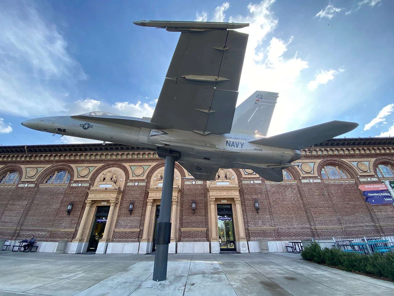 캘리포니아 과학센터는 지극히 예전 건물의 모습을 하고 있다. 벽돌로 지어진, 그리고 세밀한 창틀의 모양과 다양한 조각으로 장식이 된 마치 박물관 같은 모습을 하고 있다. 건물 옆에 커다랗게 위치한 우주왕복선의 연료탱크가 아니었다면, 위의 사진처럼 전투기가 날고 있지 않다면 역사박물관이라고 해도 충분히 믿을만했다.