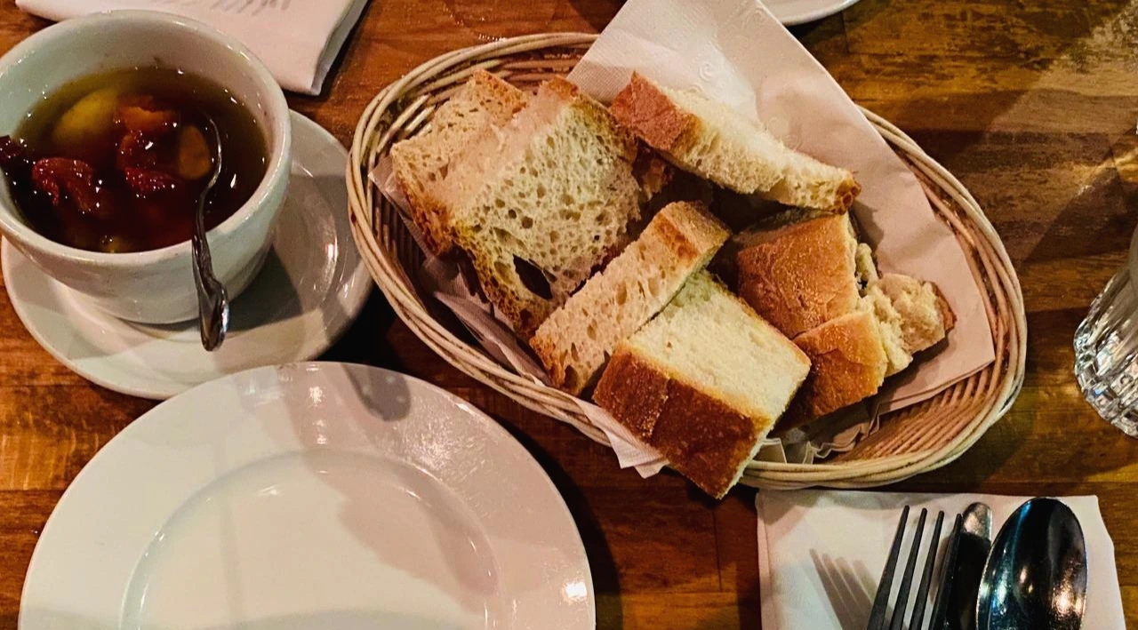 주문을 마치고 얼마 지나지 않아 빵과 곁들여 먹을 소스를 가져다주었다. 올리브유에 여러 달콤한 열매를 넣어서 만든 소스인데 정말 맛이 새로웠다. 향긋하면서도 달콤한 맛 덕분에 입맛이 확실히 돋워진 것 같다.