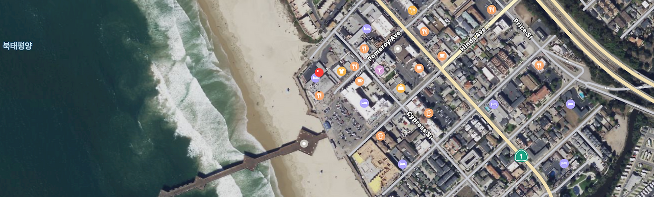밤바다 파도 소리가 바로 가까운 곳에서 들려와서인지 조금은 무섭게 느껴지는 피스모 비치의 밤거리로 나왔다. 밝은 간판들과 네온사인, 그리고 가족들과 밝게 웃으며 대화하는 사람들을 보며 그런 무서움은 금세 사그라들었다. 작은 동네였지만 걸어서 갈 수 있는 그 몇 블록 사이에 많은 음식점들이 있었다. 하루 종일 브런치 말고는 먹은 것도 없었고, 지금까지 미국에 와서 간단한 음식들만 먹었던 것 같아 이번 저녁만큼은 제대로 주문해서 먹어보기로 다짐했다.