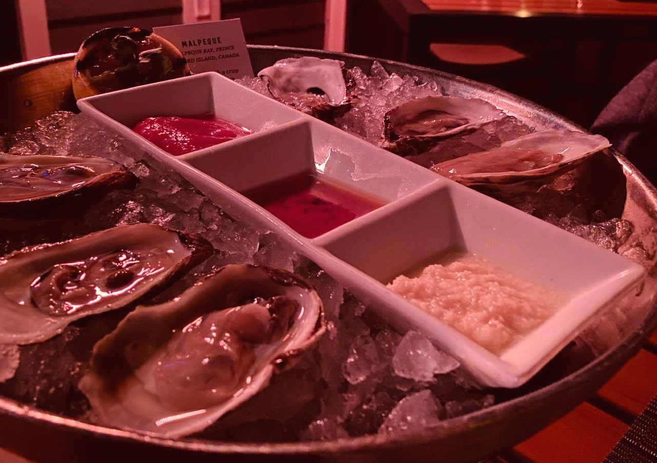 그다음으로 나온 음식은 바로 굴이다! 십 수 가지의 굴 종류를 판매하는 여러 전문 오이스터 바에 비교하자면 적은 수의 굴 종류를 준비해 두고 있었다. 이 날은 세 종류의 굴을 맛볼 수 있었다. 나는 사실 굴이라면 종류에 상관없이 모두 좋아하긴 하지만, 함께 여행하는 친구는 그렇지 않을 것 같았다. 단면을 살짝 익힌 레몬즙을 충분히 뿌려주고 기호에 맞게 생으로, 혹은 소스를 첨가하여 한 입씩 먹었다. 친구의 반응을 조심스럽게 살폈는데, 다행히도 너무 맛있다며 만족스러워했다. 이제 마음 놓고 굴을 먹을 수 있게 되었다.