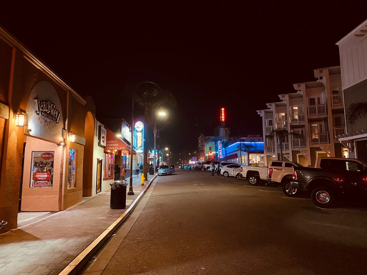 긴 운전 끝에 어둑어둑해진 피스모 비치에 도착했다. 예약해 둔 호텔 주차장을 찾아 헤매는 바람에 시간이 조금 더 지체되었다. 각종 네온사인이 번쩍이는데 무언가 옛날 느낌이 들었다. 마치 넷플릭스에서 방영하는 시골 도시를 바탕으로 하는 스릴러 영화가 있다면 딱 여기에서 찍었을 것 같다는 생각을 했다.