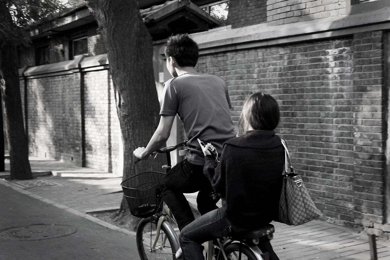 제 앞으로 교복 대신 운동복을 입은 어린 학생들이 자전거를 함께 타고 지나갑니다. 남학생은 자전거의 핸들을 잡고 여학생은 옆으로 다리를 가지런히 펴고 앉아 두 손은 남학생의 허리를 감았습니다. 까까머리의 남학생은 무엇이 그리 좋은지 입이 귀에 걸렸네요. 그의 인생에서 가장 튼튼할 두 다리로 페달을 힘껏 밟으며 한껏 과장된 목소리를 내고, 긴 머리를 고무줄 하나로 질근 묶은 뒷자리의 여학생은 앞자리 남학생에게만 겨우 들릴 만큼 수줍게 웃습니다. 빨리 달릴 이유가 없는 자전거는 느릿느릿 후통을 가르며, 그렇게 제게서 멀어져 갑니다.