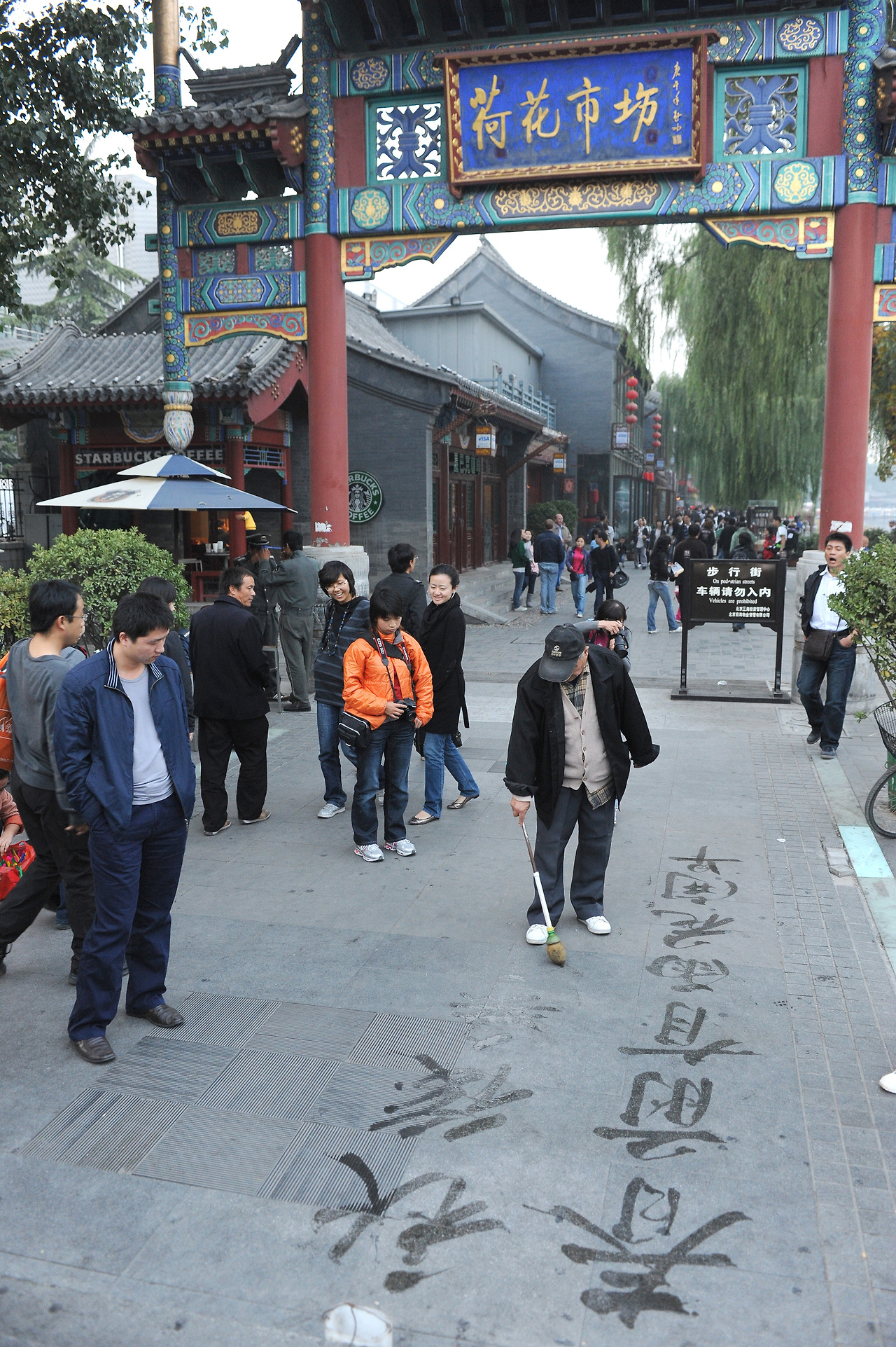 2. 스차하이 입구의 넓은 광장에서 멋쟁이 할아버지가 얼후를 연주 중이다.