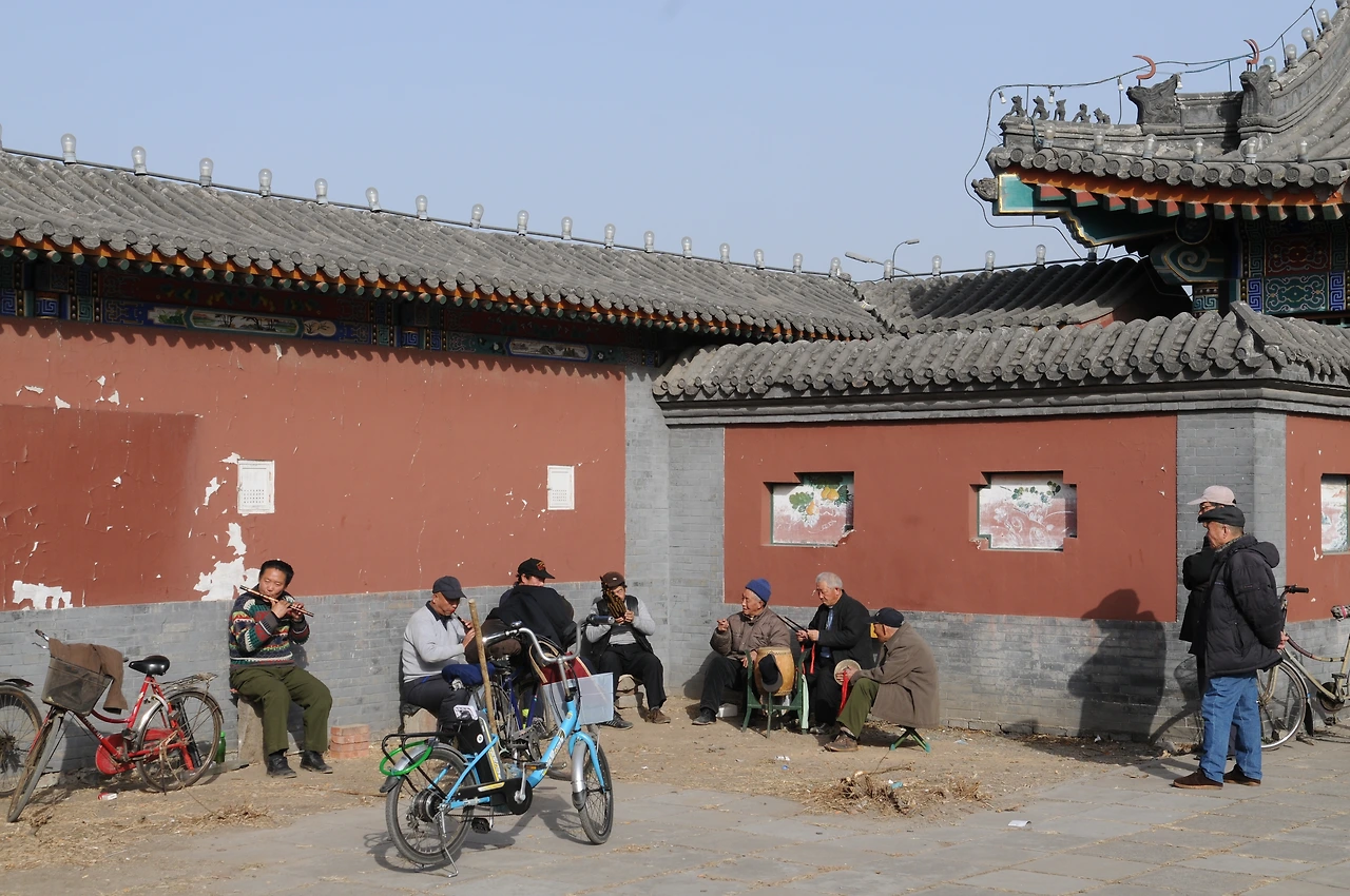 1. 영하의 날씨였음에도 마을의 노인들은 볕이 잘 드는 담장에 모여 얼후 등 전통악기를 연주하셨다.