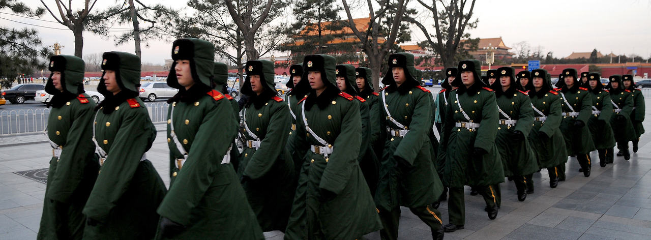천안문광장에서 날마다 아침이면 벌어지는 조촐한 국기 게양식이 끝나고 그들의 기지로 돌아가는 무경들의 행렬. 언젠가 저들의 겨울 외투를 입어볼 기회가 있었는데 옷이라기보다는 이불에 가까웠다. 옷을 입으니 춥지 않구나라는 감상보다 무겁고 불편하다는 생각이 먼저 들게 했던 옷.