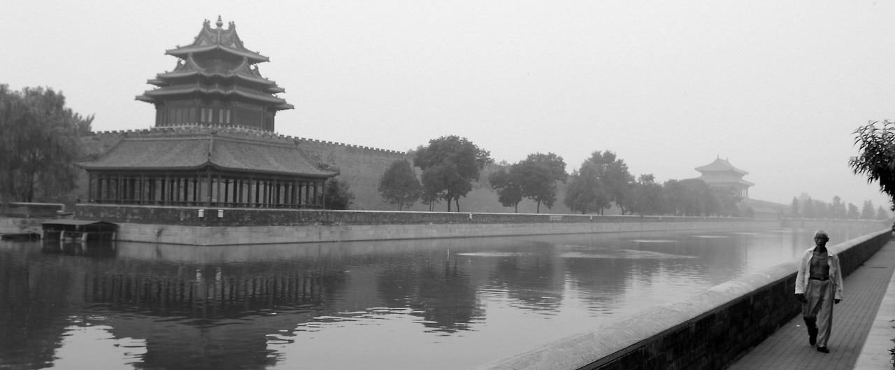 적의 침입을 막고자 자금성 주위를 파고 물을 채운 해자(垓子)를 따라 상의를 풀어 헤친 노인이 걷고 있다.