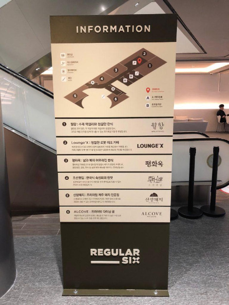 강남 한복판에 미래형 레스토랑을 지향하는 공간 '레귤러 식스'가 오픈했다. 축산 유통 스타트업 '육그램'과 동명의 식당으로도 유명한 외식 기업 '월향'이 합작하여 먹거리가 모인 공간을 만들어냈다. 크게 한식을 기반으로 한 식당 4가지와 정육점, 커피를 판매하는 까페로 이뤄져 식사와 함께 담소까지 나눌 수 있는 공간으로 구성되어 있다.