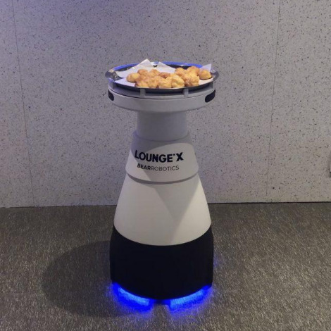 오픈형 까페 ‘라운지 엑스’에서는 빵과 커피를 서빙 하는 귀여운 로봇 ‘빵셔틀’을 운영한다.